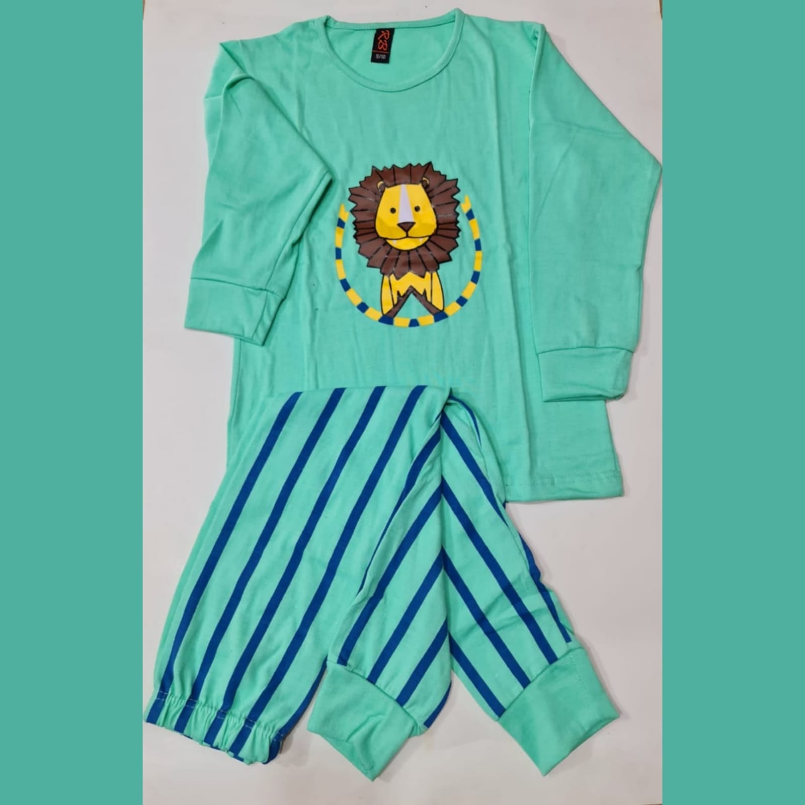Baby or Baba Sea green Lion Print Full Sleeves Night Suit for Kids (1 Pcs) (ZA-122)