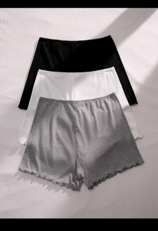 - Product Name : Pack Of 3 Plain Frills style Shorts For Ladies (ZA-279)