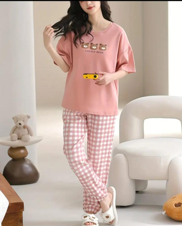 Pink Lovely 3 Bears Printed PJ Set For Her
