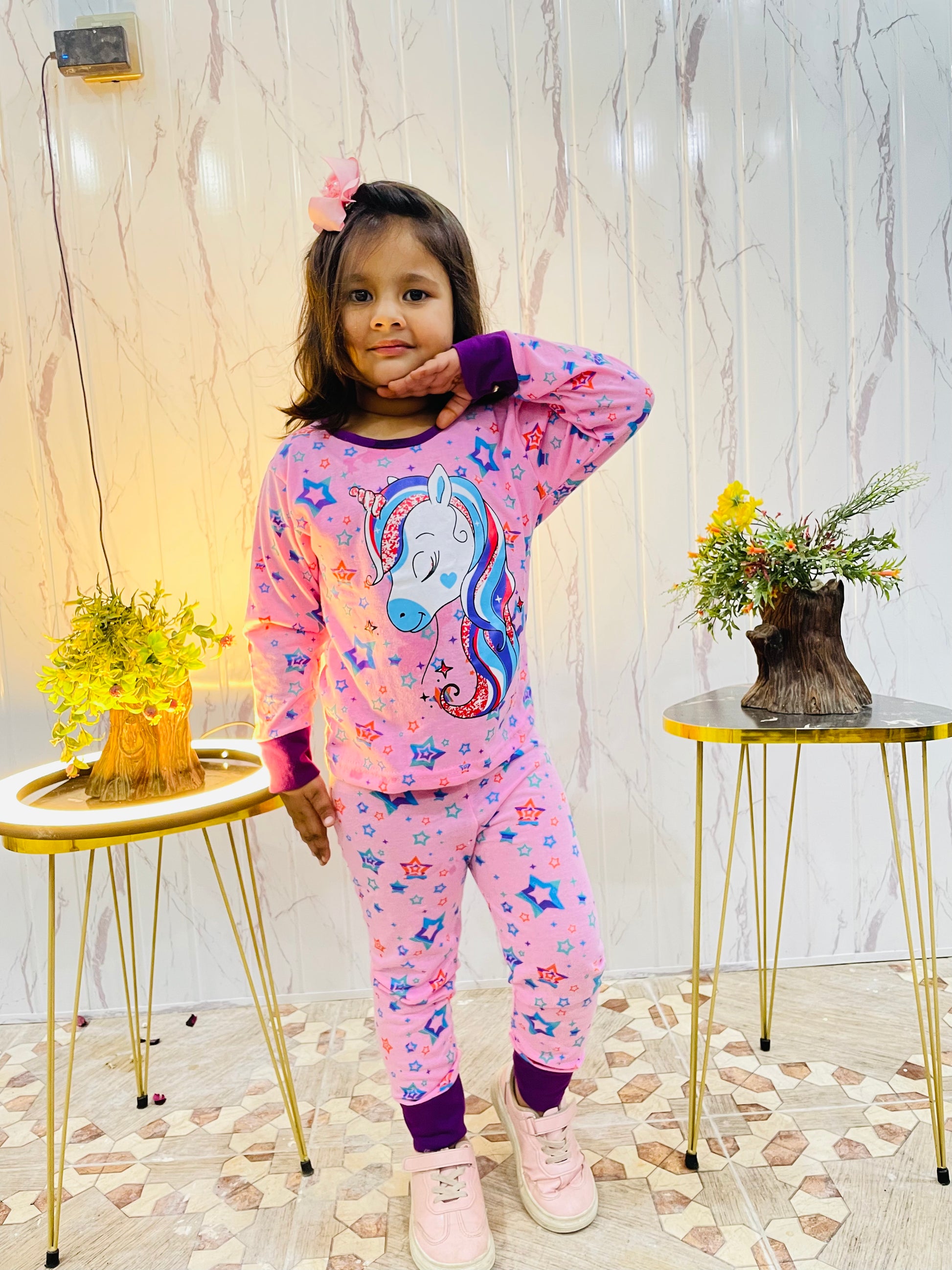 Purple Unicorn with stars Printed Kids Night Suit (ZA-268)