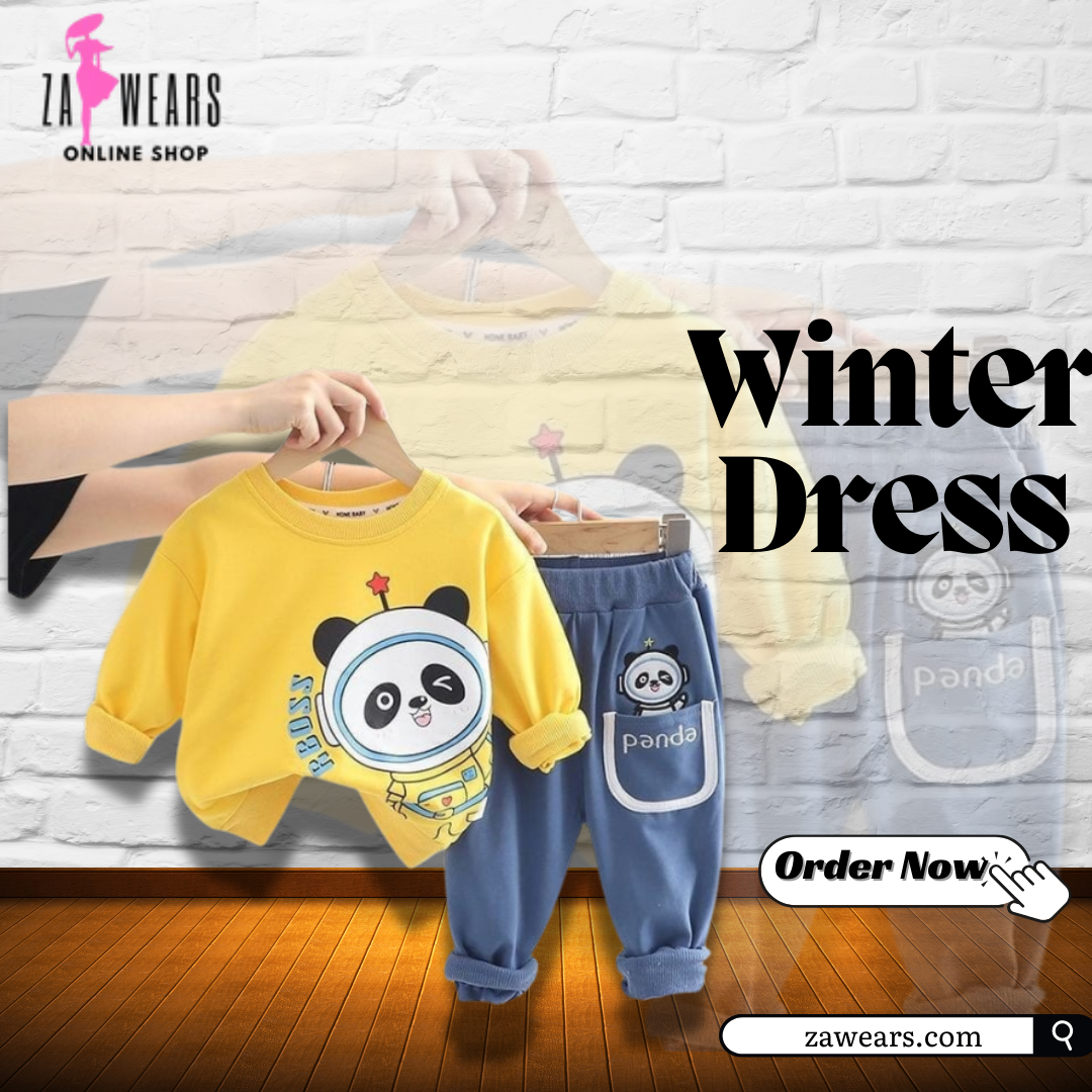 Yellow Panda face printed full-sleeves sweatshirt and trouser in kids winter collection (ZA-M-09)